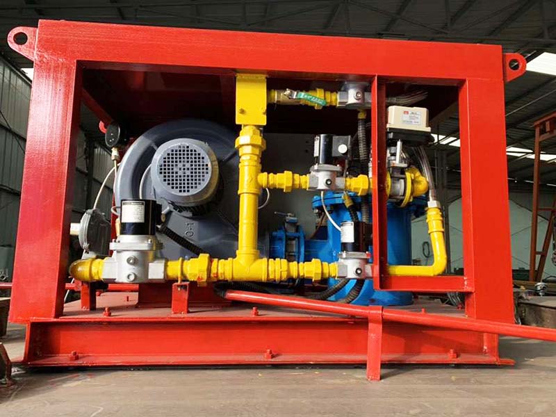 中间包烘烤器:包括燃烧器、鼓风机、助燃风管道系统和煤气管道系统,所述助燃风管道系统一端连接鼓风机,另一端接入位于燃烧器前的煤气管道系统,还包括通过控制煤气管道阀门开闭自动调节温度的控制系统,所述燃烧器为1-5个(根据膜胎尺寸确定),中间包工作层受热均匀,易脱模节能效果明显。